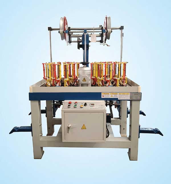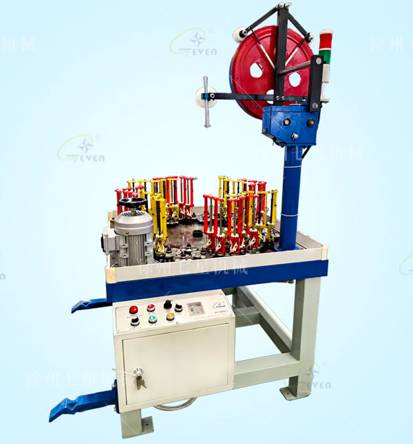 用途:織帶(鞋帶、服飾帶、松緊帶、波浪帶、滾邊帶、肩條帶等),測(cè)量繩、手提繩、拖車?yán)K、工具用繩,高空作業(yè)繩等各種繩帶的編織機(jī)。